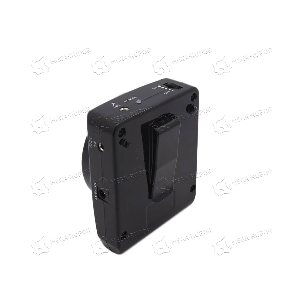 Давно подыскивал такой рупор. Достаточно легкий, около 300 г весит. Аккумулятор в нем встроенный, долго без подзарядки работает. Мощности достаточно 12 вт. Громкость регулируется. Удобно защелкивается на ремне. А в комплекте еще микрофон выносной. В Миникам24 и гарантию год дают.