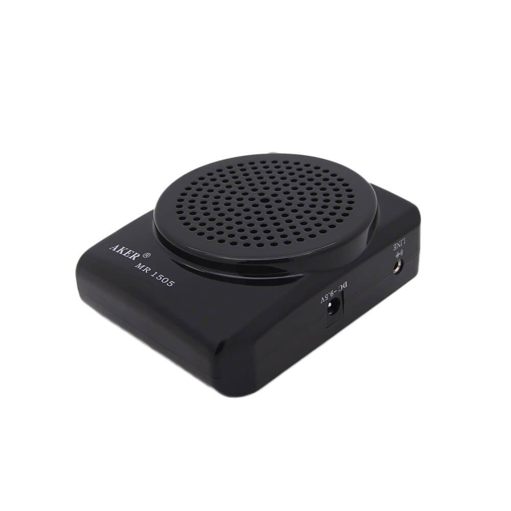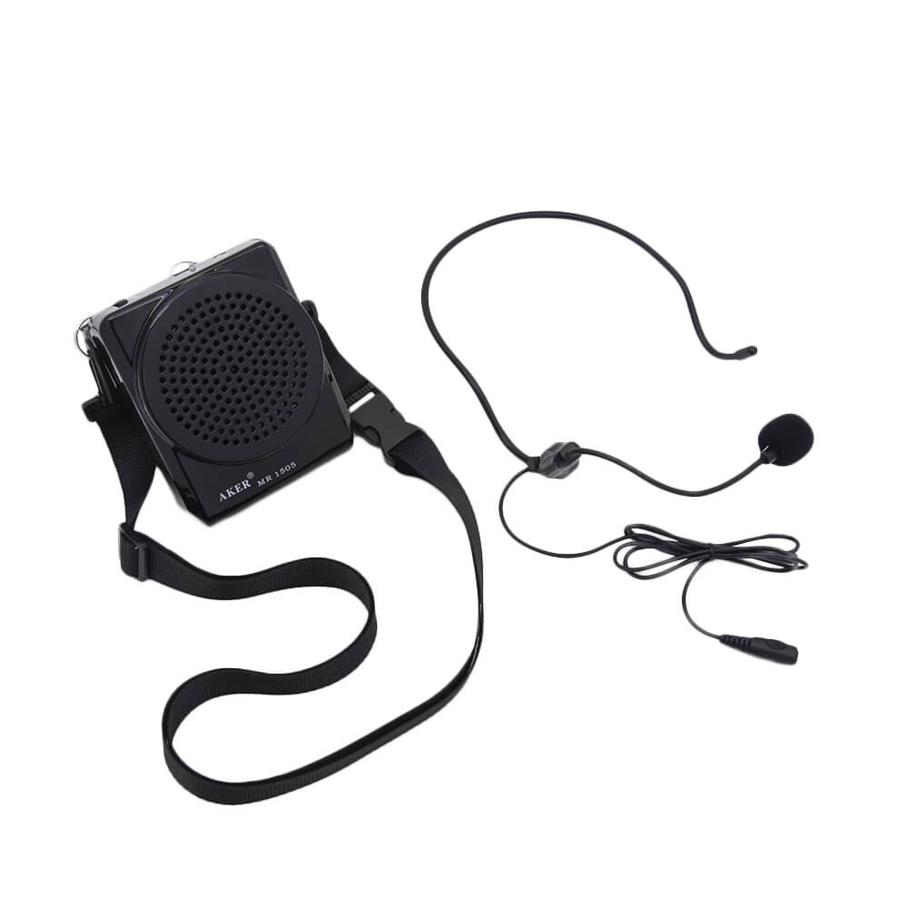 Портативный рупор-громкоговоритель Aker MR-1505 – портативный прибор для усиления голоса. Используется преподавателями и гидами во время чтения лекций и проведения экскурсий соответственно. За счет мощности в 12 В рупор может успешно применяться, как в помещениях, так и на улице. Управляется при помощи кнопок на корпусе. Прибор имеет удобный крепеж-клипсу на пояс, оснащен разъемом 3,5 мм для подключения гарнитуры. Работает от встроенного аккумулятора, время автономной работы может достигать 8 часов. Поставляется рупор в чехле для хранения и транспортировки.